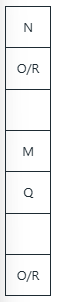 3) O sits below M. N sits above M.