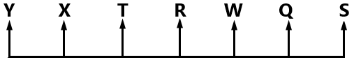 Seven students Q, R, S, T, W, X and Y are sitting in a straight line facing north. Only two people sit to the right of W. Only two people sit between W and X. Only two people sit between Y and R. R sits to the immediate left of W. S sits to the immediate right of Q. How many people sit between S and T?
