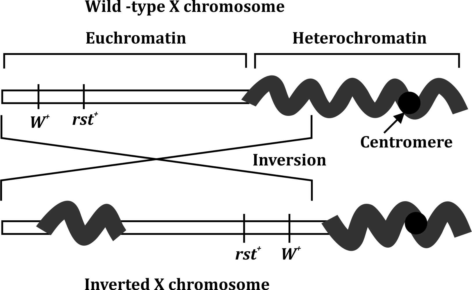 - In Drosophila, w+ (red eye gene) is silenced, leading to white eyes in the inversion strain.