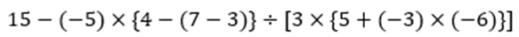 (−9) − (−60) ÷ (−12) + (−4) × 8