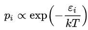where pi is the probability of the system being in state i, exp is the exponential function, εi is the energy of that state, and a constant kT of the distribution is the product of the Boltzmann constant k and thermodynamic temperature T. The symbol ∝ denotes proportionality.