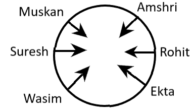 Six friends are sitting around a round table facing the centre with equal distances between two neightours. Wasim is second to the right of Muskan. Ekta is seating to the immediate left of Rohit. Amshri is sitting third to the left of Wasim. Suresh is second to the left of Ekta. Who is to the immediate right of Wasim?