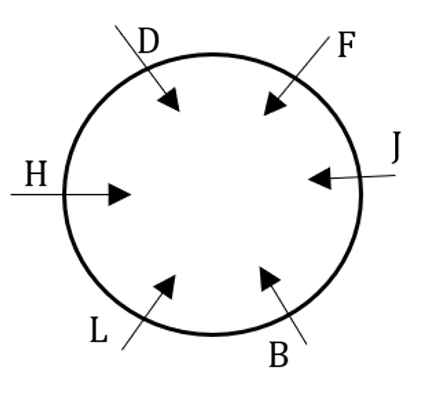 Six friends B, D, F, H, J and L are sitting around a circular table facing the center (but not necessarily in the same order). F is the immediate neighbor of D and J. L is sitting to the immediate left of B. H is the immediate neighbour of D and L. Who is sitting to the immediate left of J?