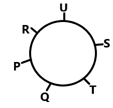 Six friends P, Q, R, S, T, and U are sitting around a circular table facing away from the center.