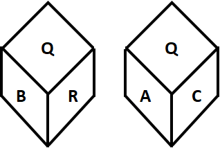 So, B is on opposite face of A.