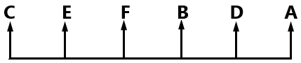 Six people, A, B, C, D, E and F are sitting in a row, facing north. F sits to the immediate left of B. C sits third to the left of B. D is an immediate neighbour of B. E sits to the immediate right of C. D sits to the immediate left of A. Who sits at the extreme right end of the line?