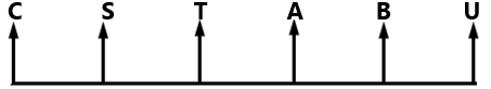 Six people, A, B, C, S, T and U, are sitting in a row facing north.