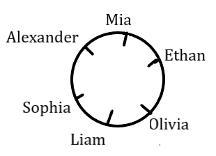 Alexander and Olivia sit opposite to each other and Alexander is not a neighbour of Liam. Mia sits to the immediate right of Ethan.