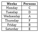 Six persons A, B, C, D, E, and F submit their projects on six different days of the week starting from Monday to Saturday. Who submits the project on