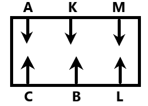 A is NOT opposite to L or K