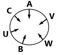 Six students A, B, C, U, V and W are seating around a circular table facing the centre (but not necessarily in the same order). Only one person sits between U and W when counted from the right of U. Only one person sits between A and W. Only two people sit between A and B. C is an immediate neighbour of U. How many people sit between A and V when counted from the left of V.