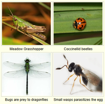Spiders, beetles, dragonflies feed on bugs.