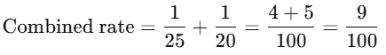 1. Calculate work rate of Sonu: Sonu's rate = 1/25