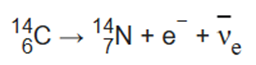An example of electron emission (β- decay) is the decay of carbon-14 into nitrogen-14 with a half-life of about 5,730 years: