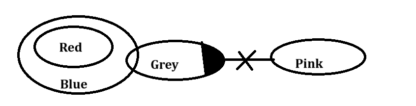 I follows: Red is only related to blue and with other elements it has no relation.