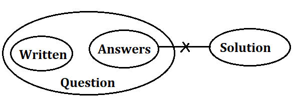 I. Does not Follow: Relation of Written is restricted with all elements except Question. So, Some Written are Answers logically doesn’t follow even in possibility.