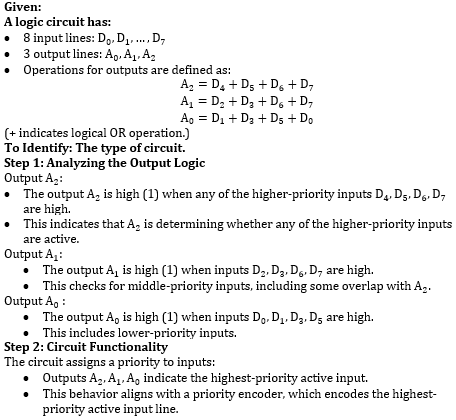 Priority Encoder: Correct, as the circuit prioritizes inputs and outputs a binary representation of the highest-priority input.