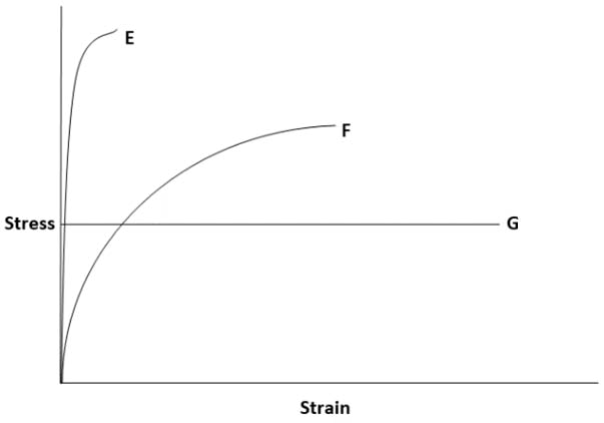 2. Curve F: Ductile Material with Yield Point