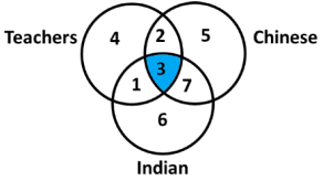Study the diagram and identify the region representing teachers who are Indian and Chinese.