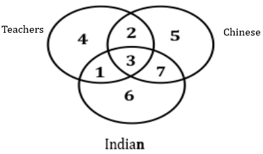 Study the diagram and identify the region representing teachers who are Indian but not Chinese.