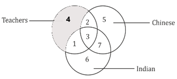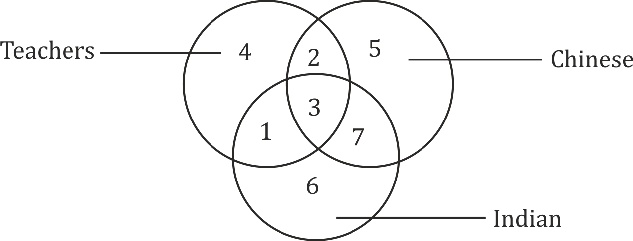 Study the diagram and identify the region representing teachers who are not Indian and not Chinese.