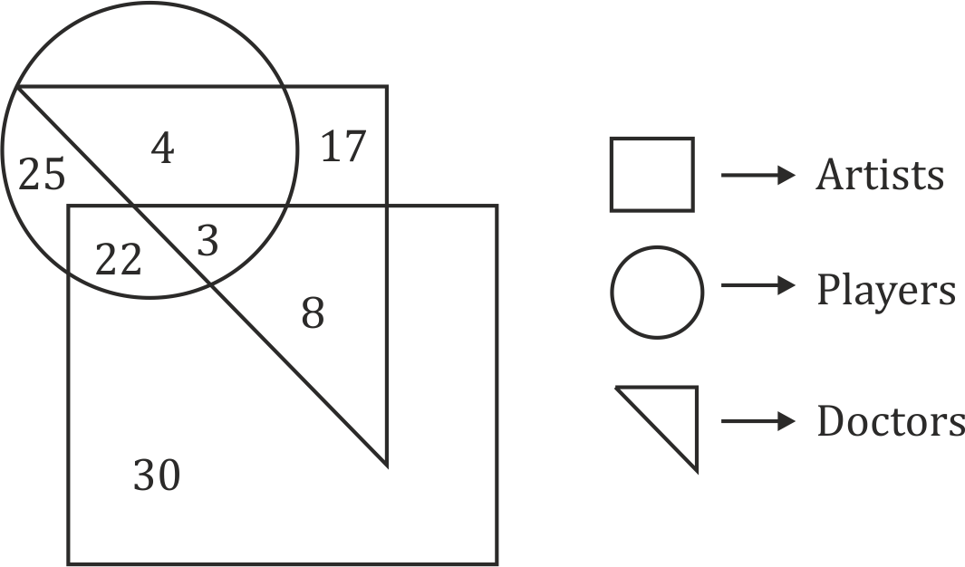 Study the given diagram carefully and answer the question. The numbers in different sections indicate the number of persons.
