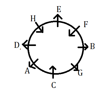 Clues: H doesn’t face in the same direction as G. Immediate neighbours of G face opposite direction to each other.