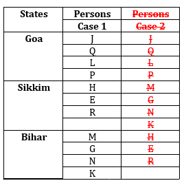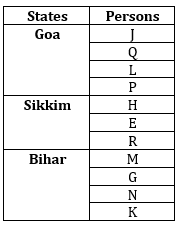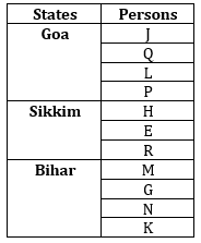 Clues: G, N and K live in the same state. J and Q live in the same state. R doesn’t live in the same state as Q. Even number of persons live with H. Odd number of persons live with P. Q and L live in the same state. R neither live in Bihar nor live with N.