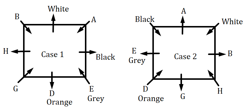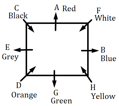 Clues: B sits opposite to E who likes Grey colour. A sits second to the right of E. H sits second to the right of the one who likes Orange colour. H doesn’t like white colour.