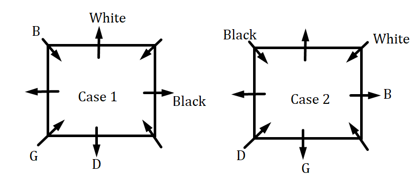 Clues: The one who sits fifth to the right of G likes white colour. One person sits between the ones who like white colour and black colour. D sits immediately to the right of G. The one who likes black colour is not an immediate neighbour of G but sits third to the left of B.