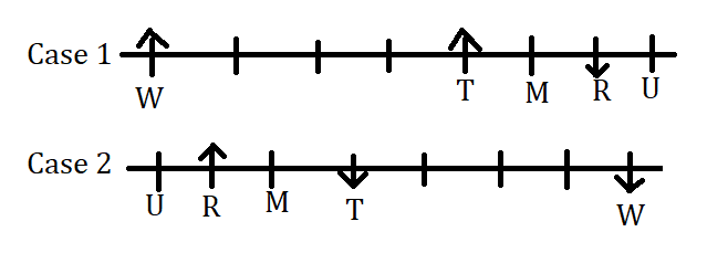 Clues: T sits fourth to the right of W. Four persons sit between M and W. R sits second to the right of T. More than two persons sit between W and R. Both the immediate neighbours of M face opposite direction to each other. U sits immediate left of R.