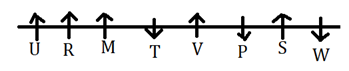 Clues: S sits fourth to the right of M. Immediate neighbours of S face the same direction. V and P sits immediate right of each other. P doesn’t face in the north direction. The persons who sit at the extreme ends face the opposite direction to each other.