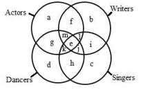 j is the region representing persons who are writers, singers and dancers, but not actors.
