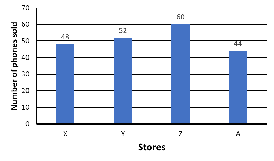 The given bar graph depicts the number of phones sold by stores X, Y, Z and A .