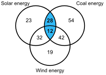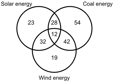 Study the given diagram carefully and answer the following question. The numbers in different sections indicate the number of people in a small village relying on different sources of energy for their daily needs.