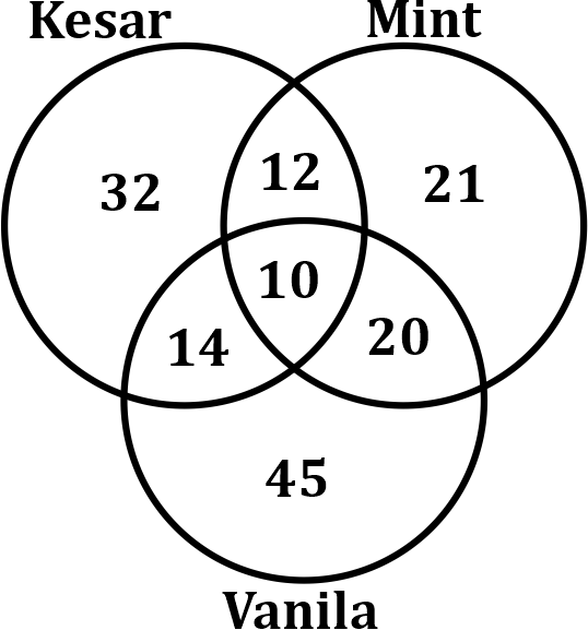 but NOT Kesar flavoured ice-cream = (12 + 10 + 20 + 21)- (10+12+14+32)