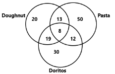 Study the given diagram carefully and answer the following question. The numbers in different sections indicate the number of persons who eat certain foods in breakfast.