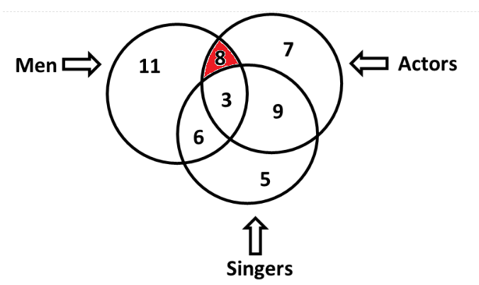 Red part in the figure shows that 8 Men are Actors but NOT Singers.