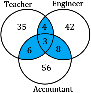 Concept: To determine the number of persons who have applied for more than one post, calculate the sum of the numbers that are common to either any two regions or all three regions. In the diagram below, the shaded area indicates the intersection of the categories for the persons who have applied for more than one post.