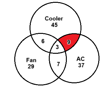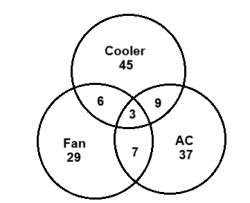 ​Study the given diagram carefully and answer the questions. The numbers in different sections indicate the number of things. Which number represents AC which are coolers but are not fans?