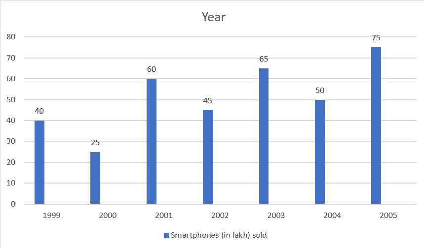 The graph presents smartphones (in lakh) sold by a company during the years 1999 to 2005.