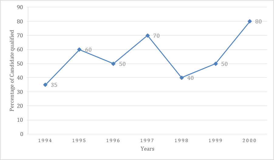 The line graph shows the percentage of candidates qualified in different years from 1994 to 2000.