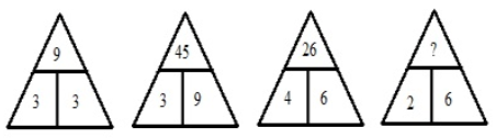 Logic: Divide the sum of the squares of the numbers given at the bottom of the triangle to get the number at the top of the triangle.