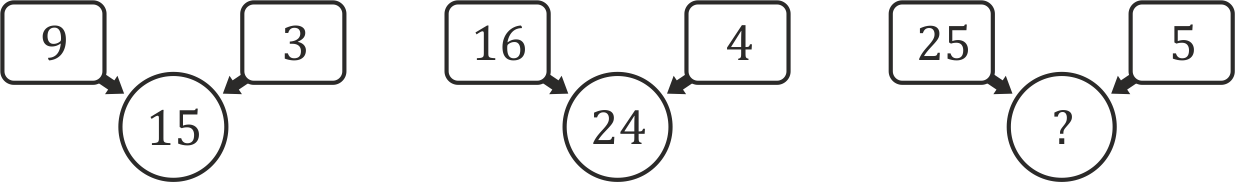 Third figure: (25 + 5) + 5 = 30 + 5 = 35