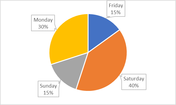 The pie-chart depicts the percentage of children who visited a playground on 4 days, out of the total number of children (which is 40 ) who visited the playground on the given 4 days together.