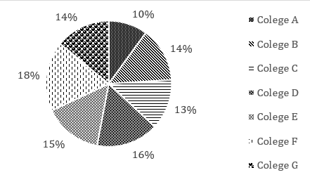 Thus students they are studying in colleges A. D and G taken together is approximate 9514.