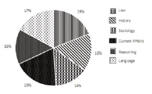 Law: 19%, History: 16%, Language: 17%