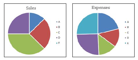 Company A has a significantly higher percentage in the expenses chart than in the sales chart.
