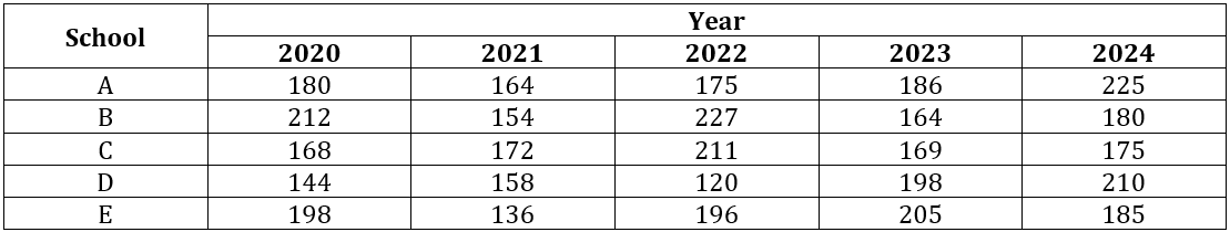 The average number of students admitted in schools B, C, D and E in 2021 is :