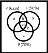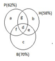 100% = [P + H + B] – [(g +d) + (e +d) + (f +d)] + d